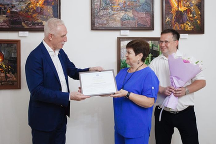 От нашей больницы была награждена санитарка дневного офтальмологического отделения Вера Васильевна Строкина. Высокую награду вручил Заместитель руководителя фракции «Единая Россия», Первый Заместитель Председателя комитета по региональной политике и местному самоуправлению С.И. Морозов.